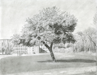 facilité un conifère ainsi qu'un feuillu au crayon graphite.
